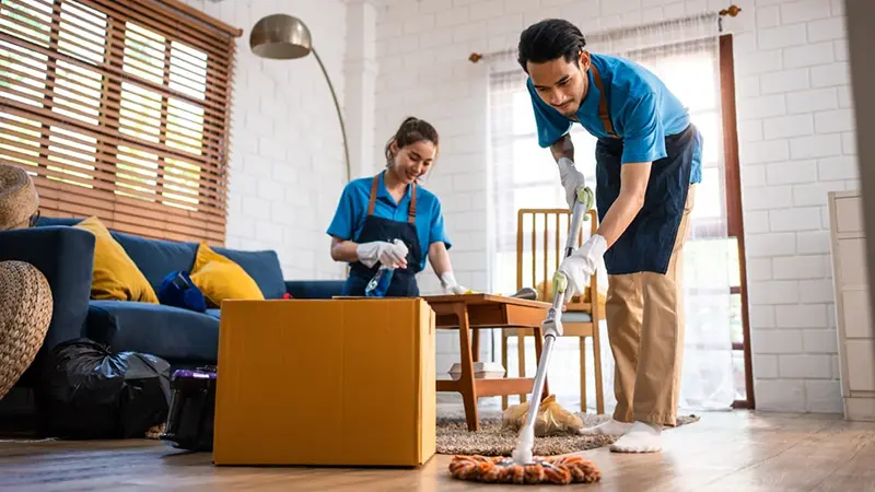 - Sweep and mop floors, focusing on corners